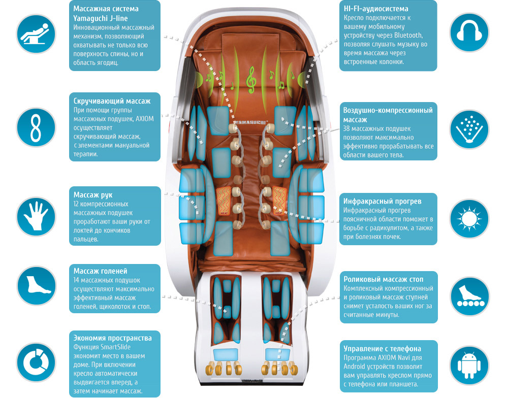 Зоны массажаШея, плечи, спина, поясница, руки, ягодицы, бёдра, икры, стопы